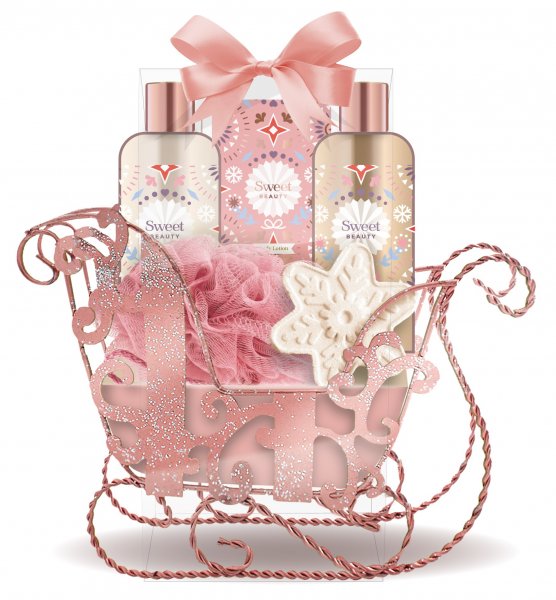 Geschenkset 5tlg im Schlitten mit Schleife rosé gold